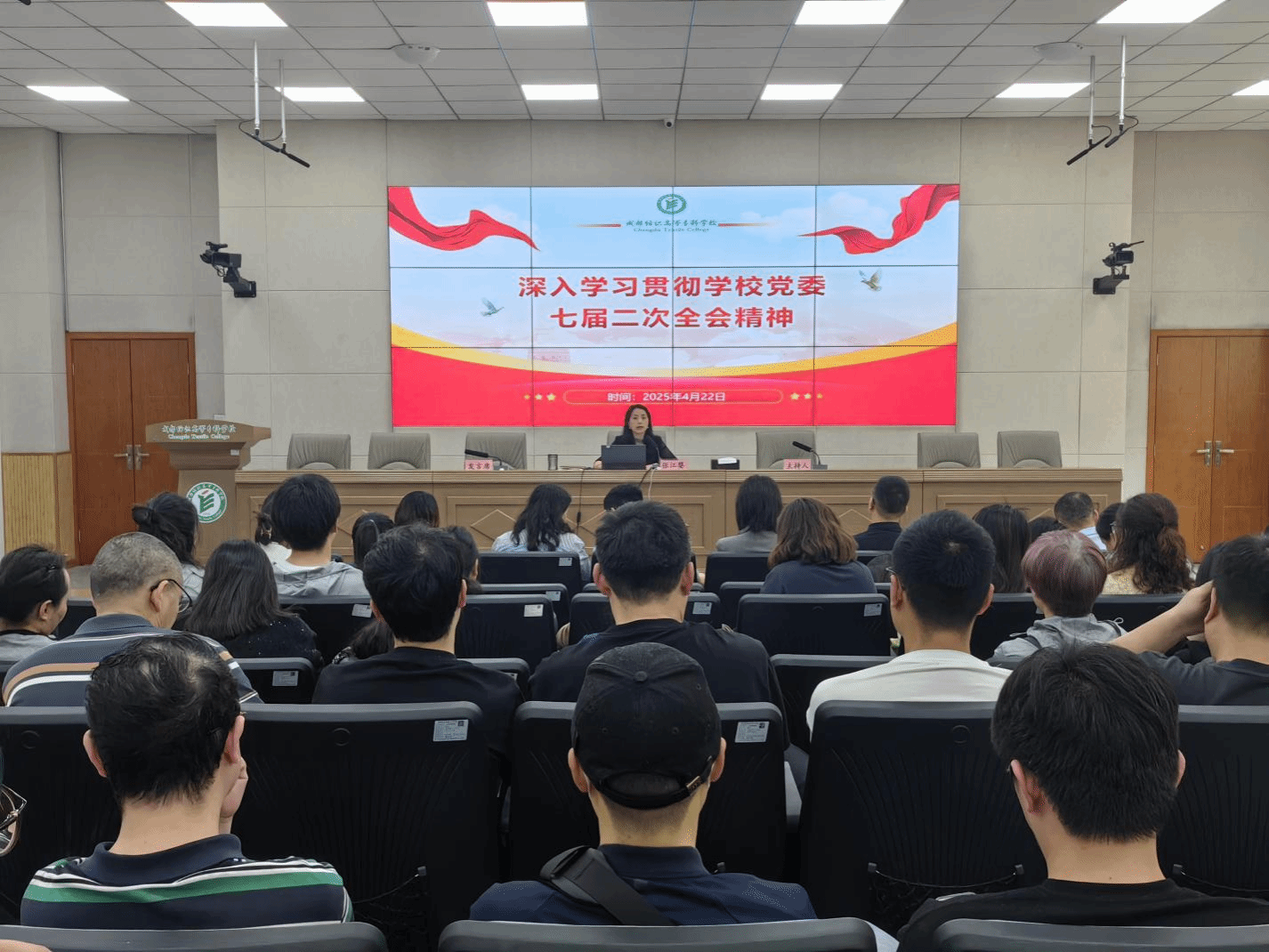 4月22日,公司党委常委、纪委书记张江婴在明德楼二楼阶梯教室开展公司党委七届二次全会精神宣讲。会议由总支书记王霖主持,公司纪委办公室、qm球盟会网站、创艺公司全体教职工参会。