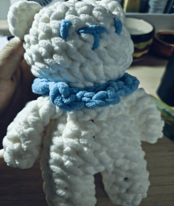 (连锁经营与管理222班刘殷旭同学编织的“小熊的温暖”)
