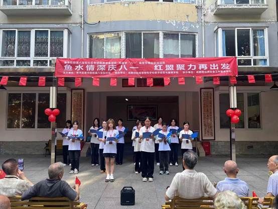 上午,qm球盟会网站织梦小青数志愿服务团队在八宝街社区的带领下和成都爬山虎社会服务工作中心的指导下,携手健康成长托管夏令营的小朋友们,共同在王家塘军干院为退伍老兵们献上了一场温馨的八一慰问演出,给退休军人和老干部们带去了青春的热情与敬意。