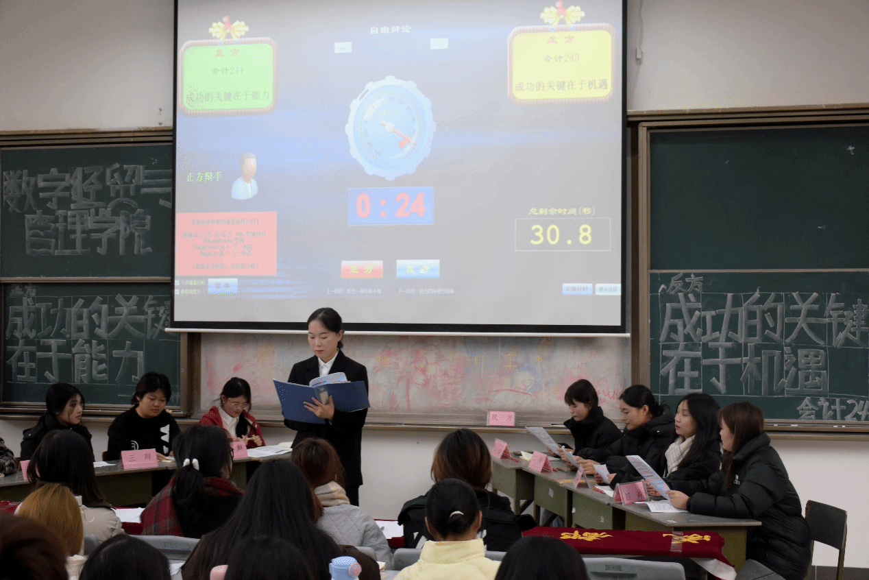 本次参赛队伍分别是正方连锁经营管理241班代表队和反方电子商务241班代表队,围绕当今时代文化传承与文化创新谁更重要展开激烈辩论。