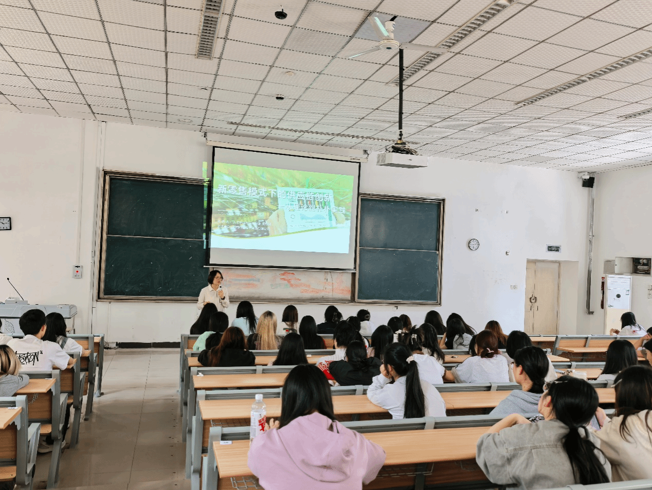 何凌首先为在场的同学们介绍新零售模式的应用情况、业务流程、供应链构建等基本情况,鼓励同学们通过企业讲座了解新的行业动态和企业文化,为就业做好准备。