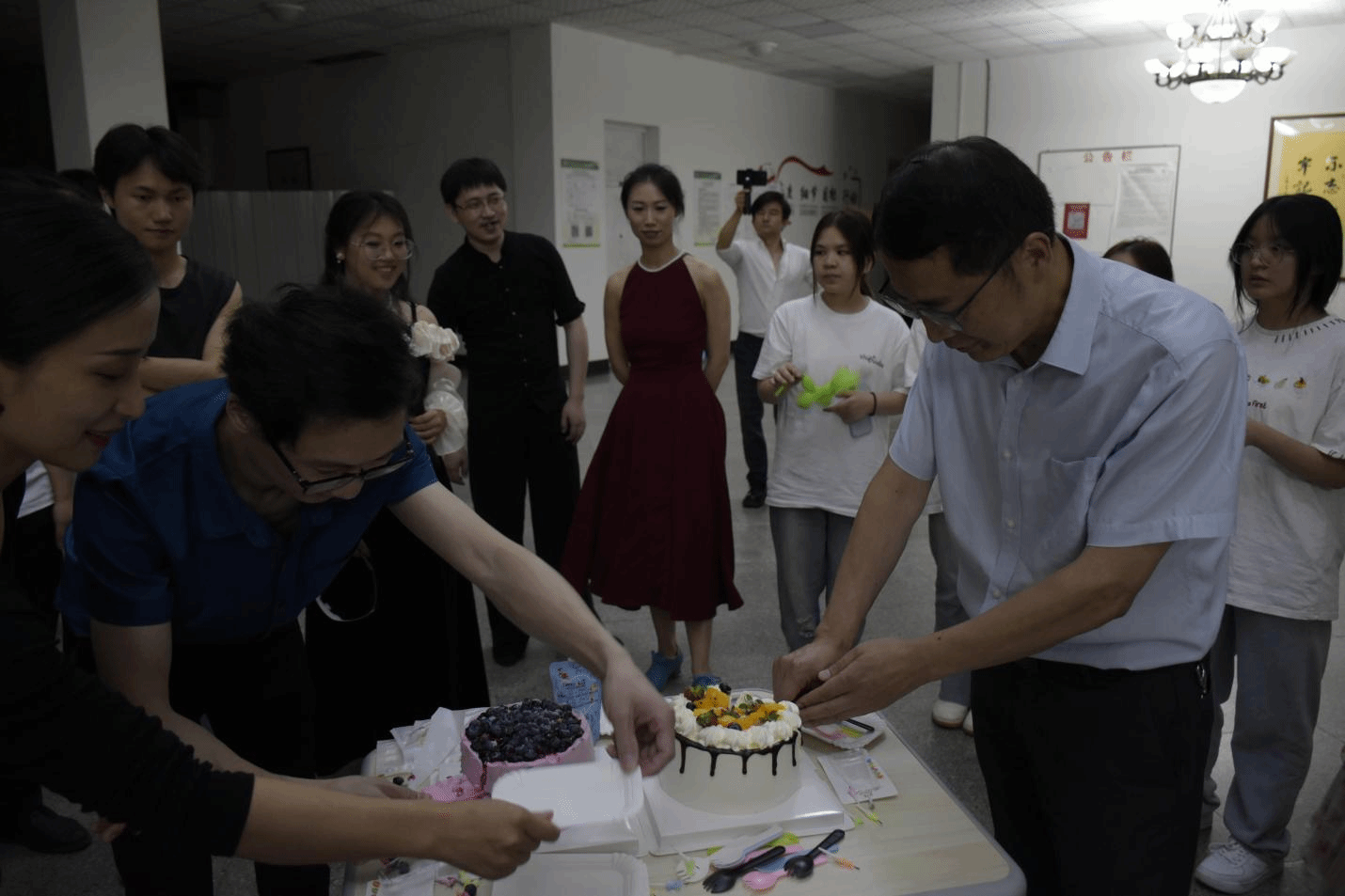 温馨的切蛋糕仪式将活动氛围推向另一个高潮。王霖与协会创始人共同切开象征美好未来的蛋糕,寓意着翊翔交谊舞协会将在新的征程中续写辉煌。最后,全场嘉宾与会员们一同合影留念,定格下这一难忘而珍贵的瞬间。