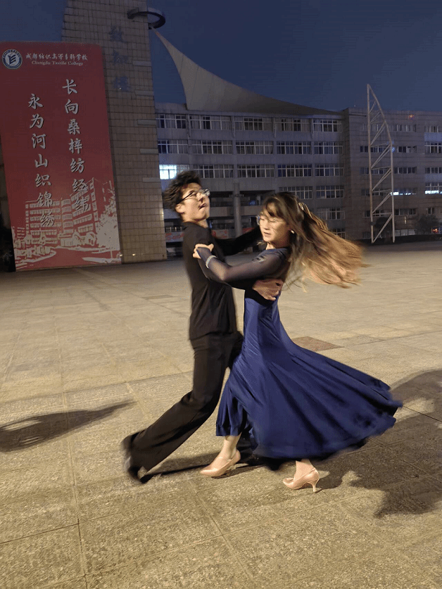 舞会当日,南苑广场早早地被装扮一新,彩灯闪烁,气球环绕,营造出了浓郁的节日氛围。随着音乐响起,舞会正式拉开帷幕。翊翔交谊舞社团的成员们率先登场,他们身姿优美,舞步轻盈,为大家带来了精彩的开场表演。无论是优雅的华尔兹,还是热情的恰恰,都被舞者们演绎得淋漓尽致,引得现场观众阵阵喝彩。