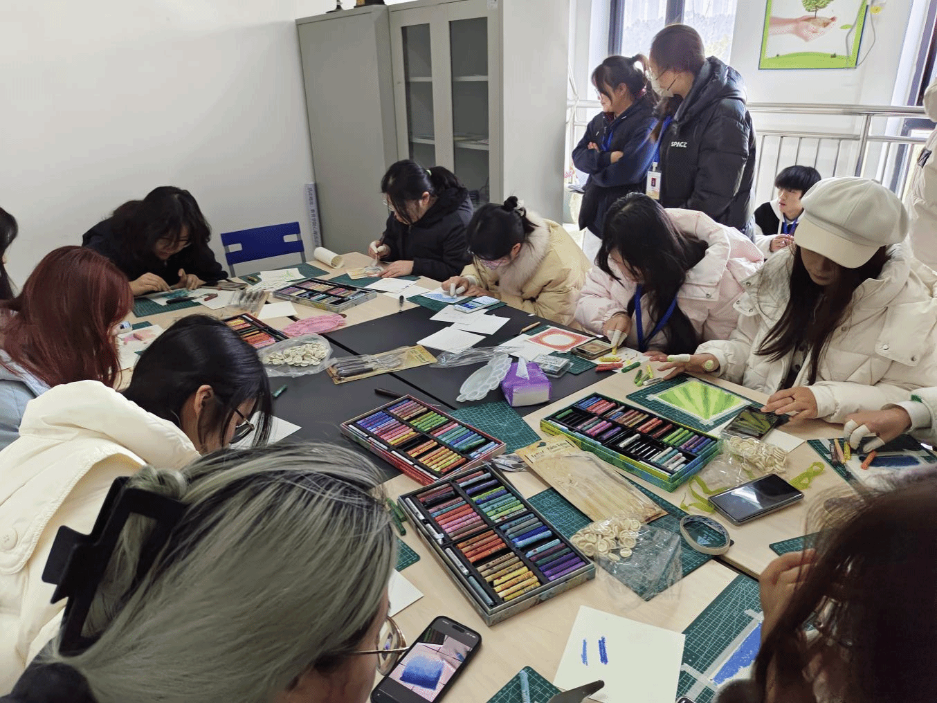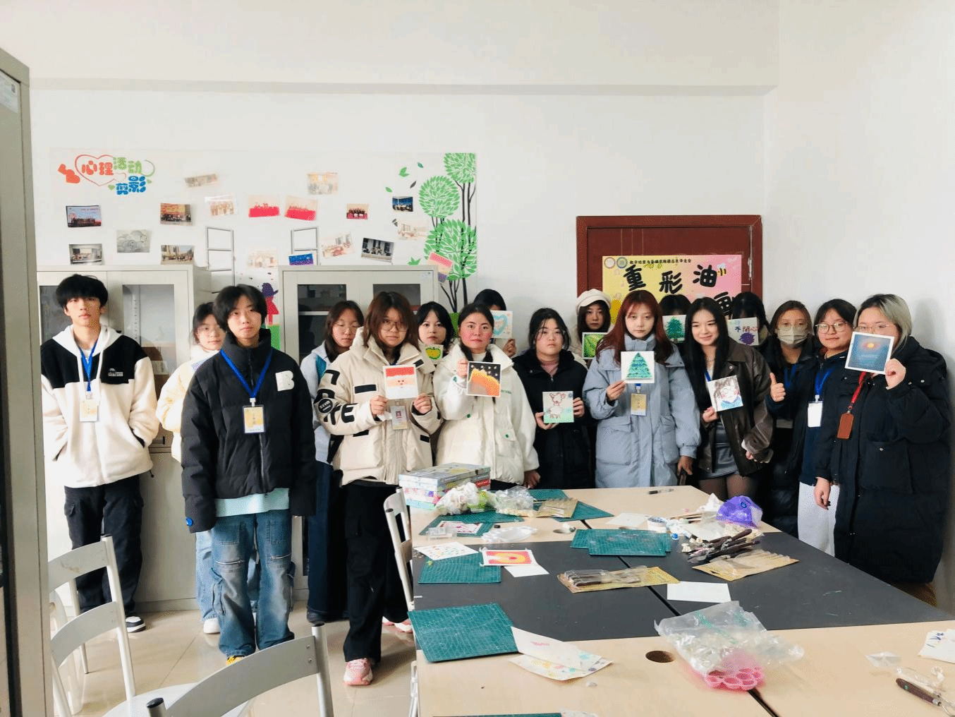 2月17日下午,qm球盟会网站团总支员工会心理部在专职辅导员贾虹宇的指导下,在北苑融创楼A301举办重彩油画棒绘画活动,公司专职大一各班心理委员和心理部干事参加本次活动。