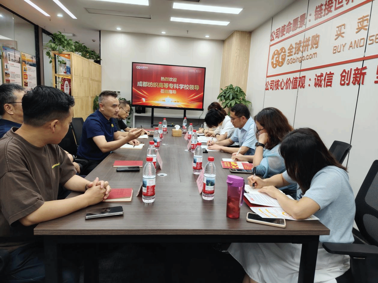 7 月 2 日下午,数字经贸与管理公司党总支书记王霖、副经理(主持工作)何凌、副经理凌书娟及国际贸易专业负责人庞霓红和电子商务负责人赵韦韦一行走访广东全球拼购电子商务有限公司四川子公司,受到四川子公司总经理周兴、副总经理罗卫东以及广东总公司西南片区校企合作负责人唐洪、成都高新区运营中心负责人何爱国、成都武侯区运营中心负责人陈瑛、西南片区校企合作负责人唐洪、成都武侯区运营中心创始股东洪建高等领导热情接待。此次走访旨在加强校企合作对接,探索人才培养新模式,为公司专业建设与产业需求深度融合奠定基础。