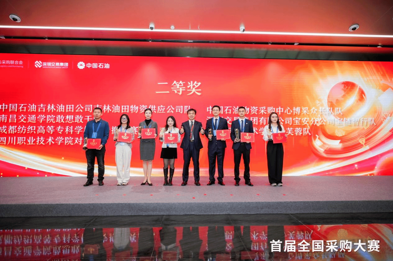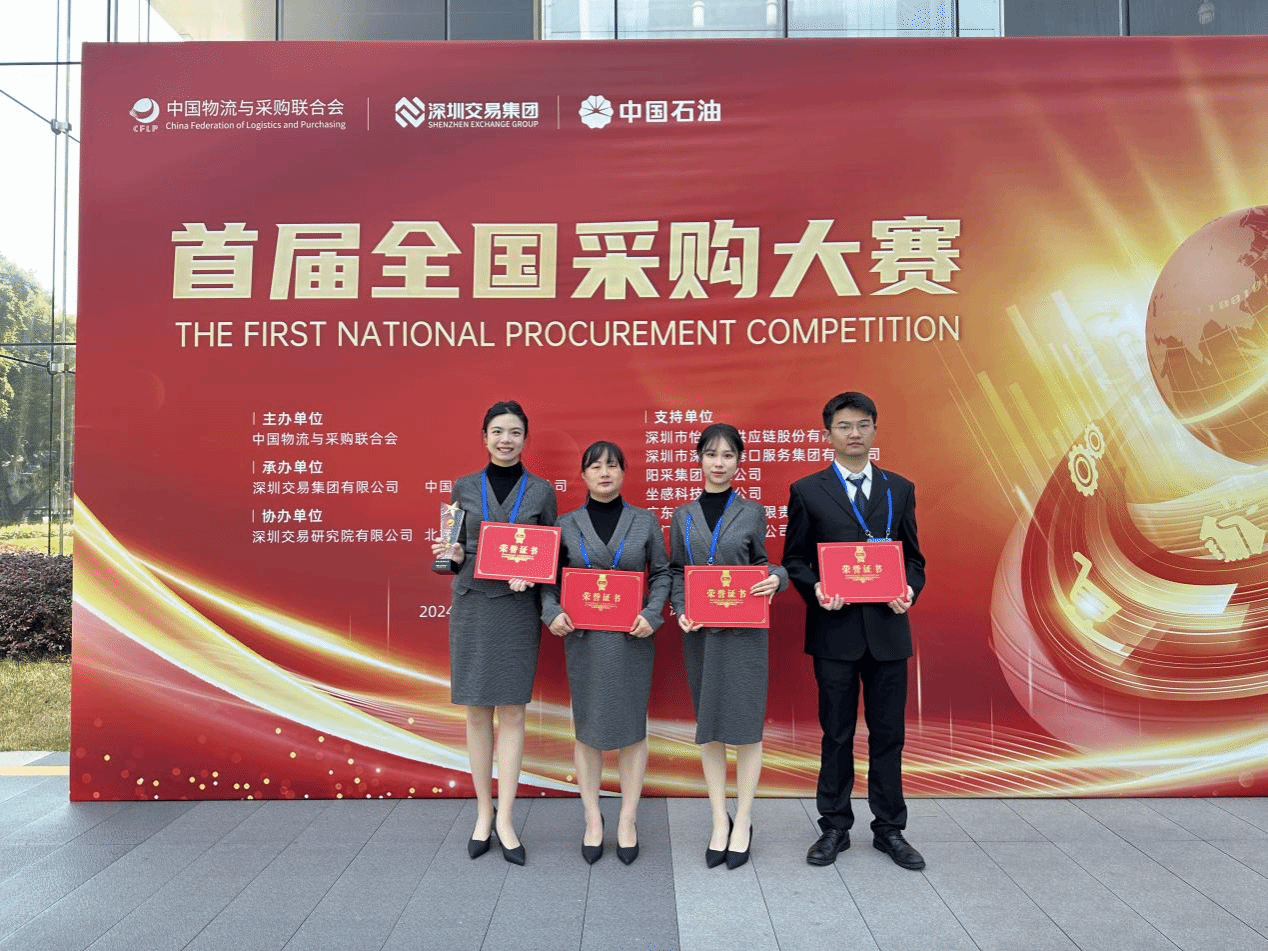 12月1-2日,由中国物流与采购联合会主办的首届全国采购大赛决赛及颁奖典礼在深圳圆满举行,qm球盟会网站教师参赛团队(周千又、黄天春、梁若兰、李居垚)从来自全国30个省自治区的137支职工团队中脱颖而出,荣获二等奖。