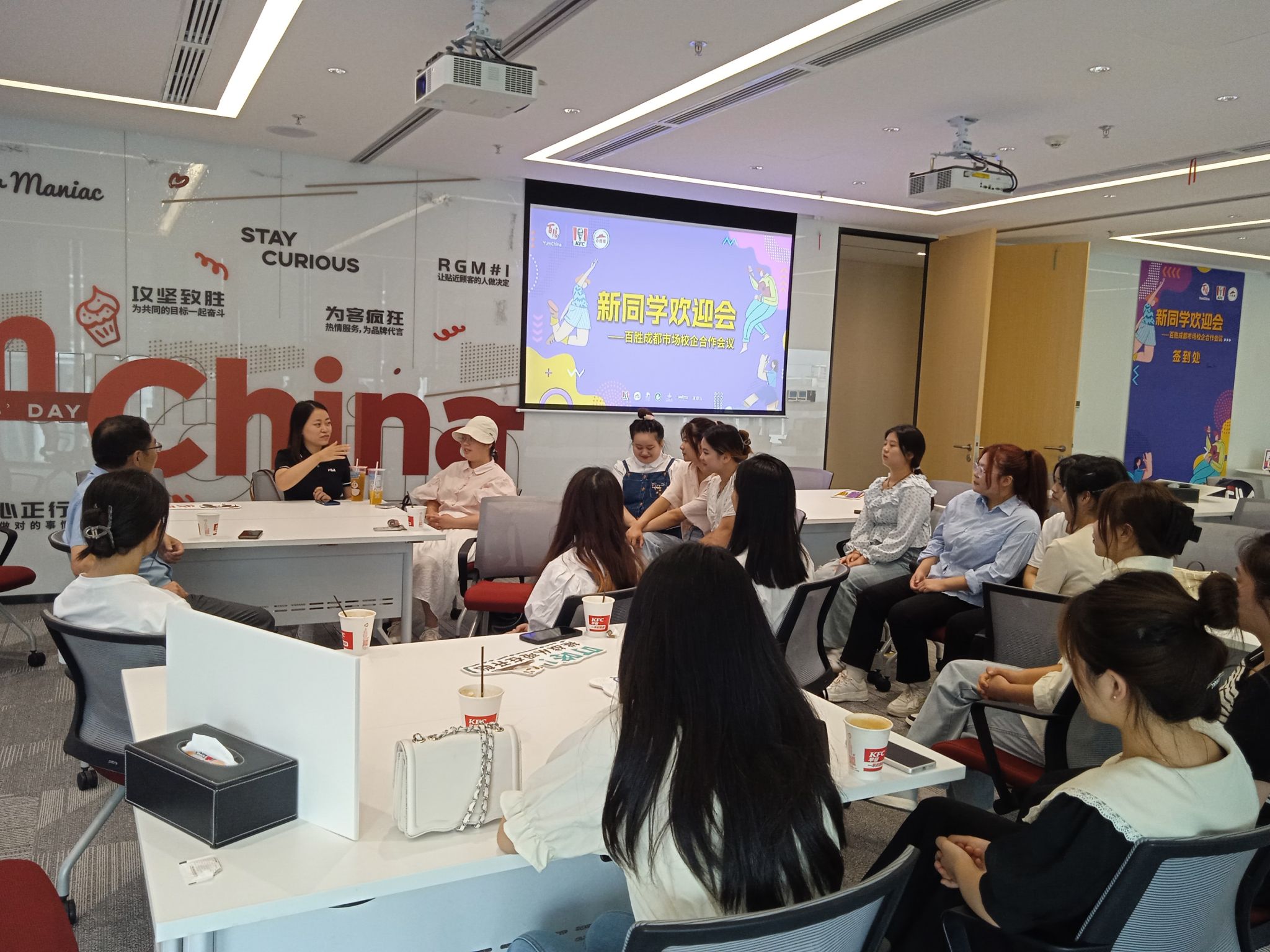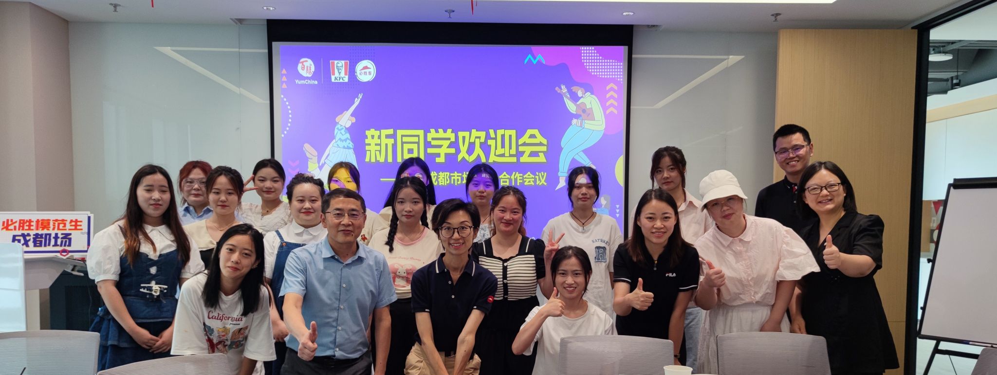 7月20日下午,总支书记王霖与连锁专业负责人陈泓樾应邀参加百胜成都公司必胜客品牌校企合作新同学欢迎会,并与公司百胜订单班暑期实习员工和员工肯德基餐厅经理邓小玲进行座谈交流。