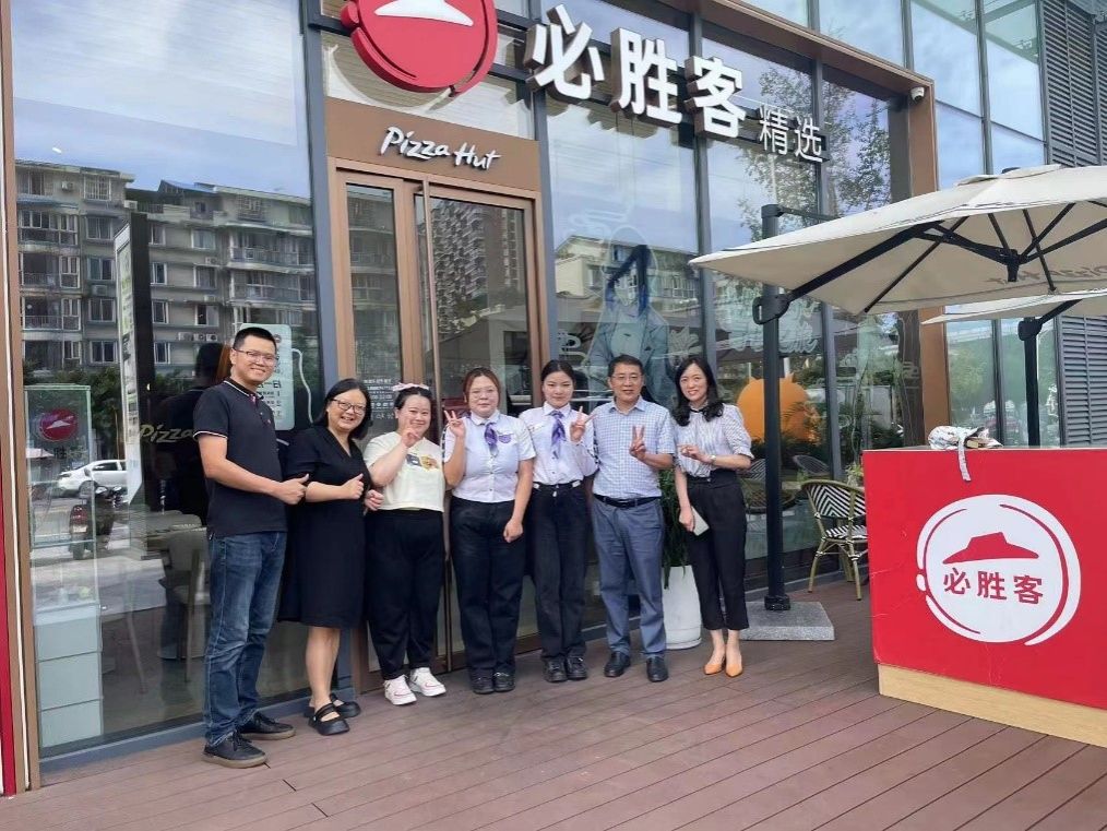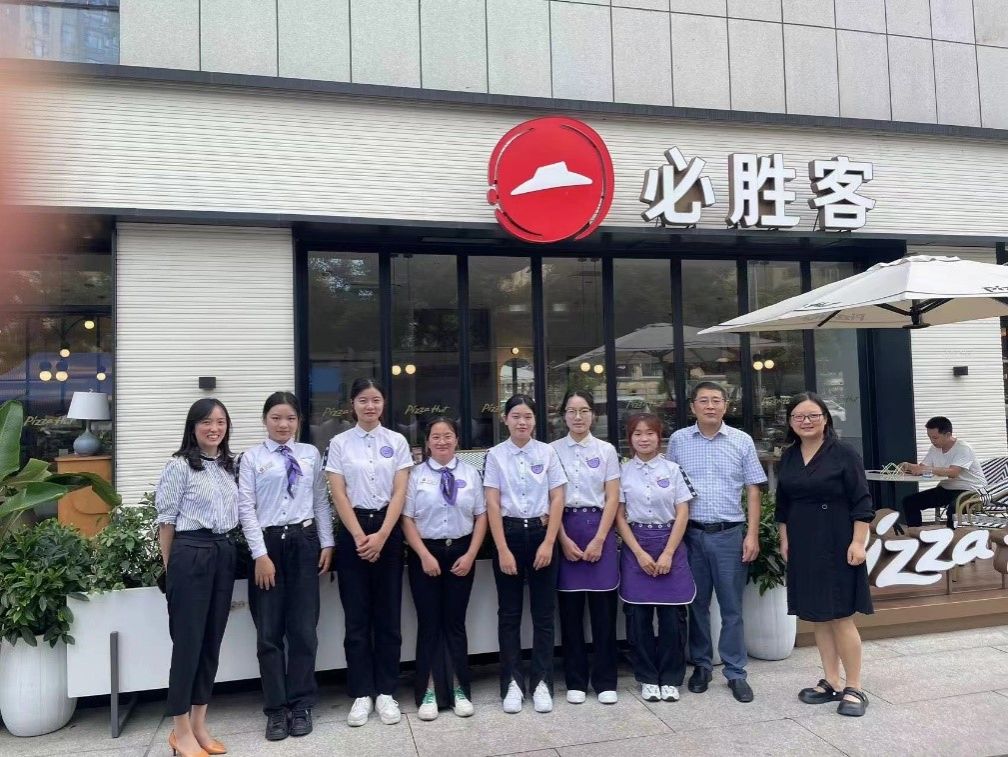 9月12日,qm球盟会网站书记王霖、副书记何酉宁、教师陈泓樾及蔡夏璐一同来到犀浦凯德广场及百伦广场两家必胜客门店,看望在门店实习的百胜订单班员工。