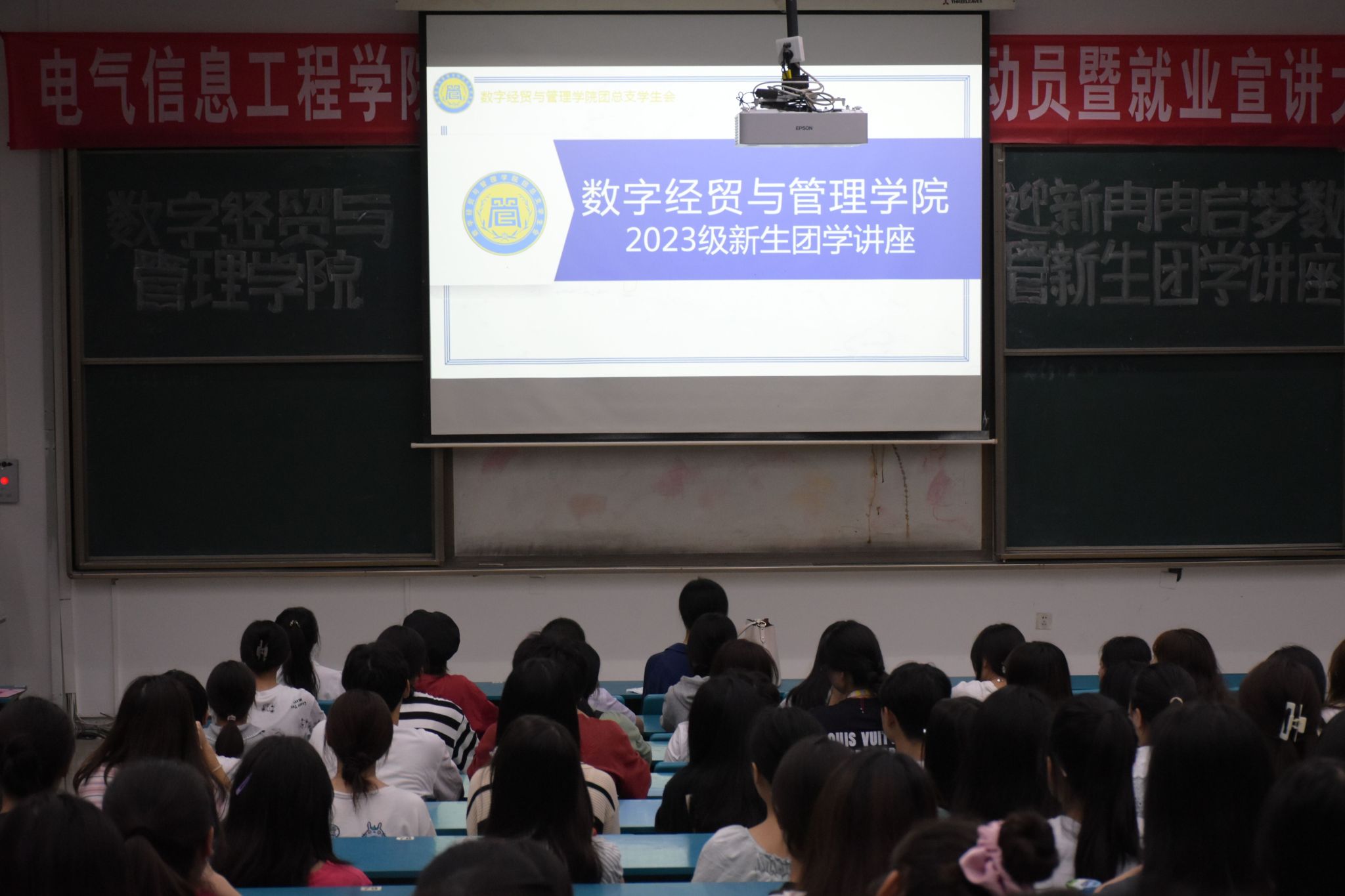 9月14日晚上,qm球盟会网站2023级新生团学讲座在南苑教学楼C101、C102召开。公司专职辅导员李韵、公司团总支员工会全体干部以及2023级全体新生参加了此次讲座。
