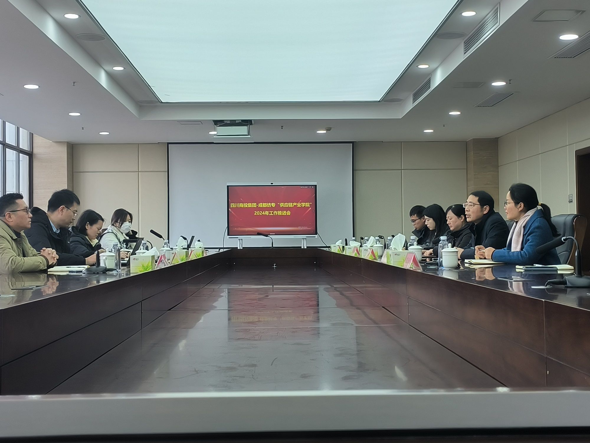 1月22日,总支书记王霖和现代物流与供应链教研室教师赴四川省商业投资集团交流推进供应链产业公司合作事宜。四川省天府优选品牌运营管理有限公司董事长党永斌、商投安岳公司董事长王富柯、县域商业事业部部长万小琴、县域商业事业部白袁媛热情接待老师们交流考察。