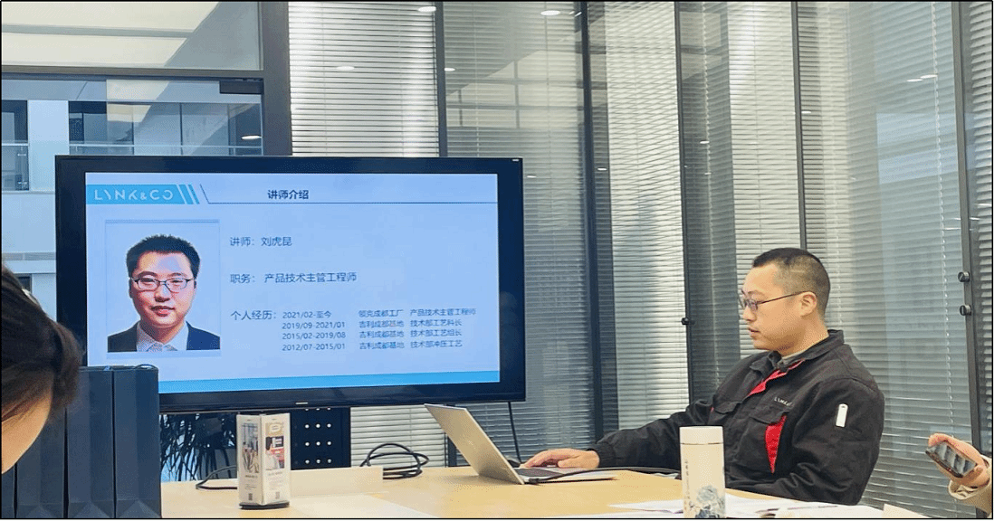 3月6日,刘虎坤和钱佳老师分别围绕《四大工艺基础介绍》、《制造工艺参观&交流》等培训内容,针对汽车工艺冲压、焊装&产品体验展开培训讲座。刘虎坤通过对汽车冲压工艺流程、焊装工艺流程、涂装工艺流程和总装工艺流程的详细介绍,让参培学员了解到工艺工作就汽车生产而言是十分重要的,与产品设计是密切相关、相辅相成的,进而更深层次学习到了把汽车原材料加工为生产资料和商品的最经济、科学的过程和方法。钱佳老师带领参培学员实地参观厂区汽车工业流程生产线,结合理论知识讲解,让学员深刻理解了汽车生产过程中的各个步骤,从冲压、焊接、涂装再到总装,每一步骤都有严格的标准和流程,确保了整个生产过程的有序进行。最后,参培学员在工作人员的带领下进行了深入的产品体验。领克汽车以其卓越的性能、多样的驾驶模式和出色的安全配置,为参培学员带来了极致的驾驶体验。