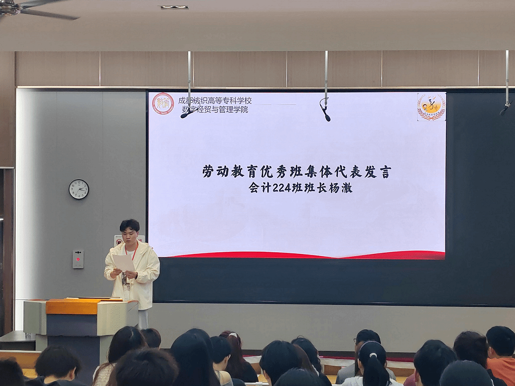 会计222班陈毓、会计222班杜俊岚、会计224班杨澈分别代表劳动之星、优秀劳动委员和优秀班集体进行了发言,分享了劳动过程中的心得和感受。其中,杨澈详细讲述了劳动对实现个人自我价值的重要意义以及在劳动教育过程中的收获,并表示将在接下来的劳动教育工作中,全班将继续努力,再接再厉,为公司劳动教育工作贡献力量。
