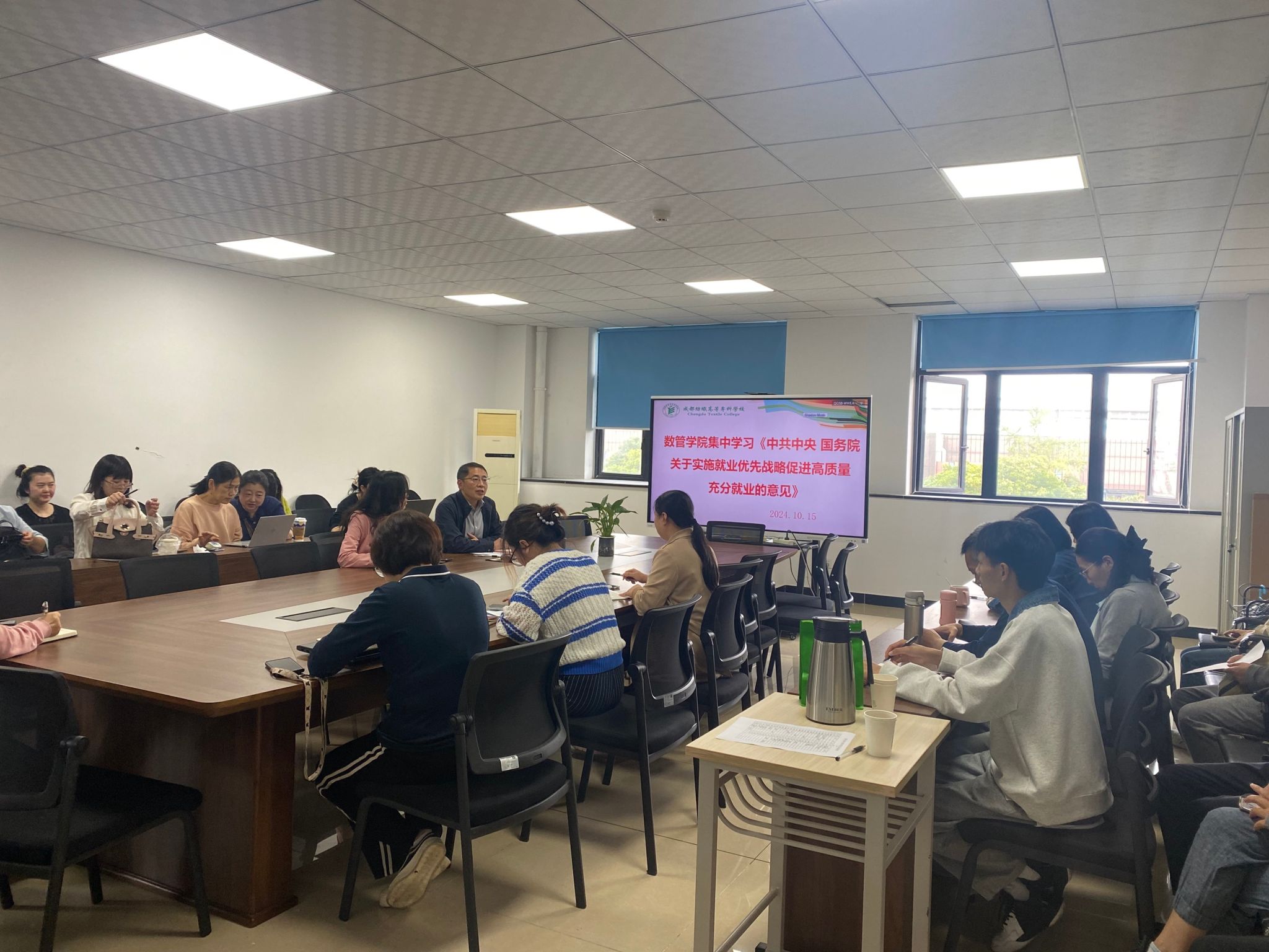 王霖带领全体教师一起学习研讨了《意见》文件精神,强调就业是民生工程,事关人民群众切身利益,事关经济社会健康发展,事关国家长治久安。要认真对照《意见》的要求,深刻领悟新时代新征程就业工作的新定位、新使命,准确把握促进高质量充分就业的实践路径和工作要求,以就业为核心牵引人才培养工作。