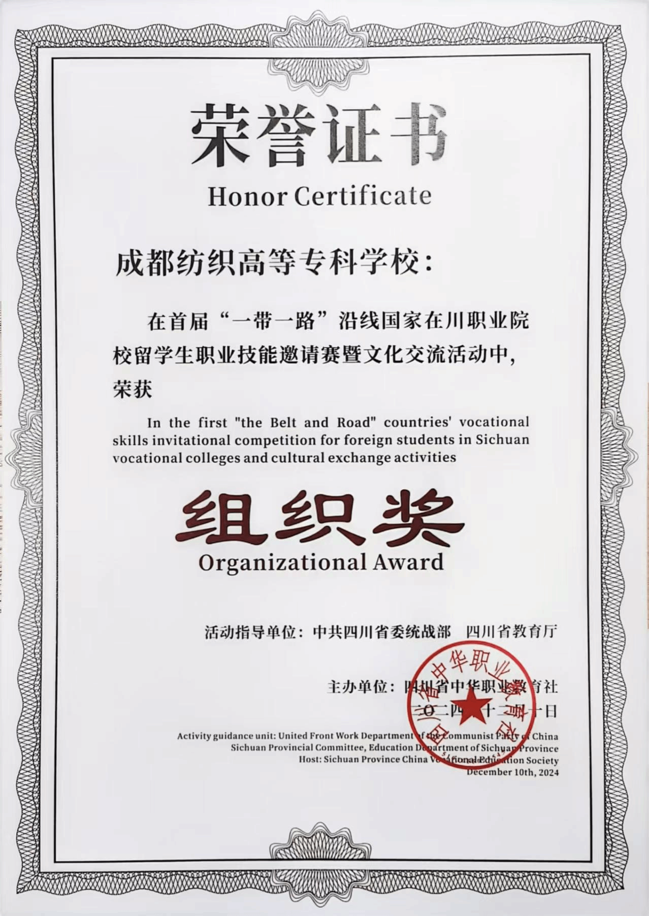 12月9-10日,由四川省中华职业教育社主办首届“一带一路”沿线国家在川职业院校职工职业技能邀请赛在德阳圆满落下帷幕,qm球盟会网站物流专业的三位老挝职工同学荣获二等奖,公司获得组织奖。