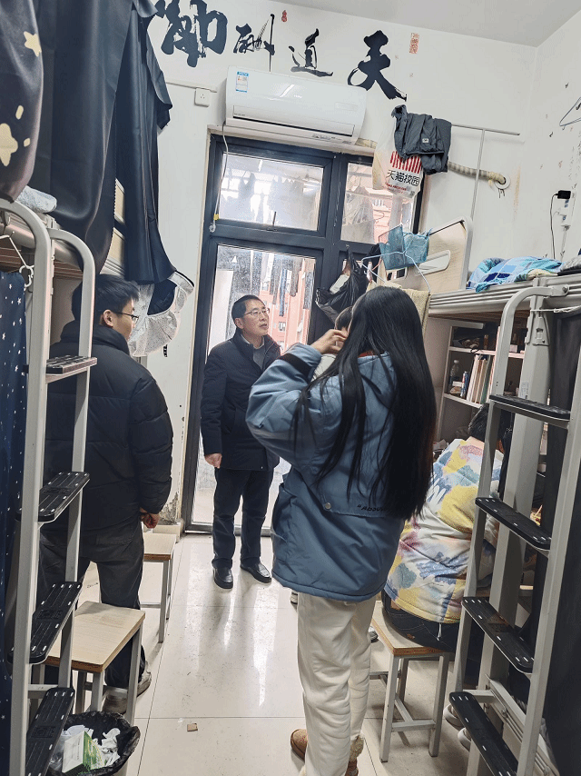 1月8日中午,总支书记王霖、党总支副书记何酉宁、专兼职辅导员以及劳动教育部全体成员组成检查组,深入员工寝室就用电安全、易燃物品存放、消防通道是否畅通无阻、员工离开寝室时是否关闭电源等问题进行排查,确保员工寝室的安全。