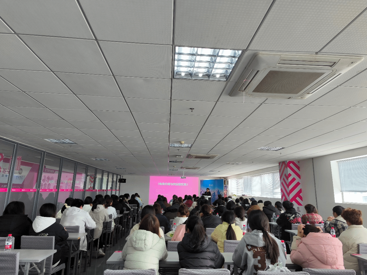在培训室中,唯品会的企业专家方桢和杨林两位老师给同学们进行了理论课程讲解。方桢老师就电子商务中的供应链作业逻辑、仓储模式、唯品会的运配模式等相关内容进行了详细讲解,逻辑清晰,案例翔实。杨林老师通过大量视频和案例展示了唯品会目前正在逐步引进和应用的自动化系统及智慧物流设备,使同学们直观感受到了技术更新对电商效率提升的重要性。