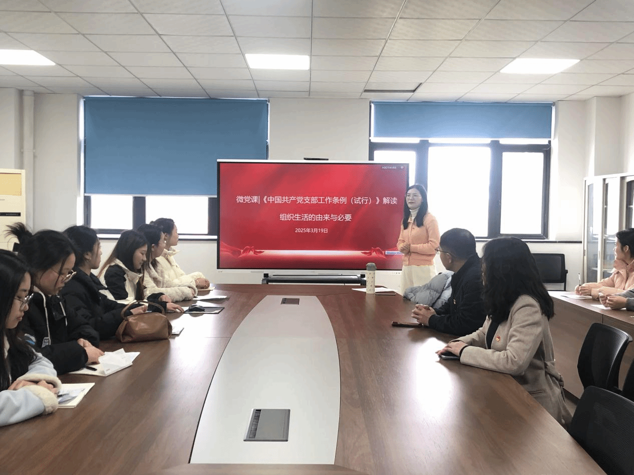 3月19日,qm球盟会网站员工党支部在融创楼A402开展了本学期第一次党课,主题为《中国共产党支部工作条例(试行)》解读——组织生活的由来与必要。本次党课由公司专职组织员兼员工第二党支部书记何敏主讲,公司党总支书记王霖和党总支副书记何酉宁及全体员工党员参加。