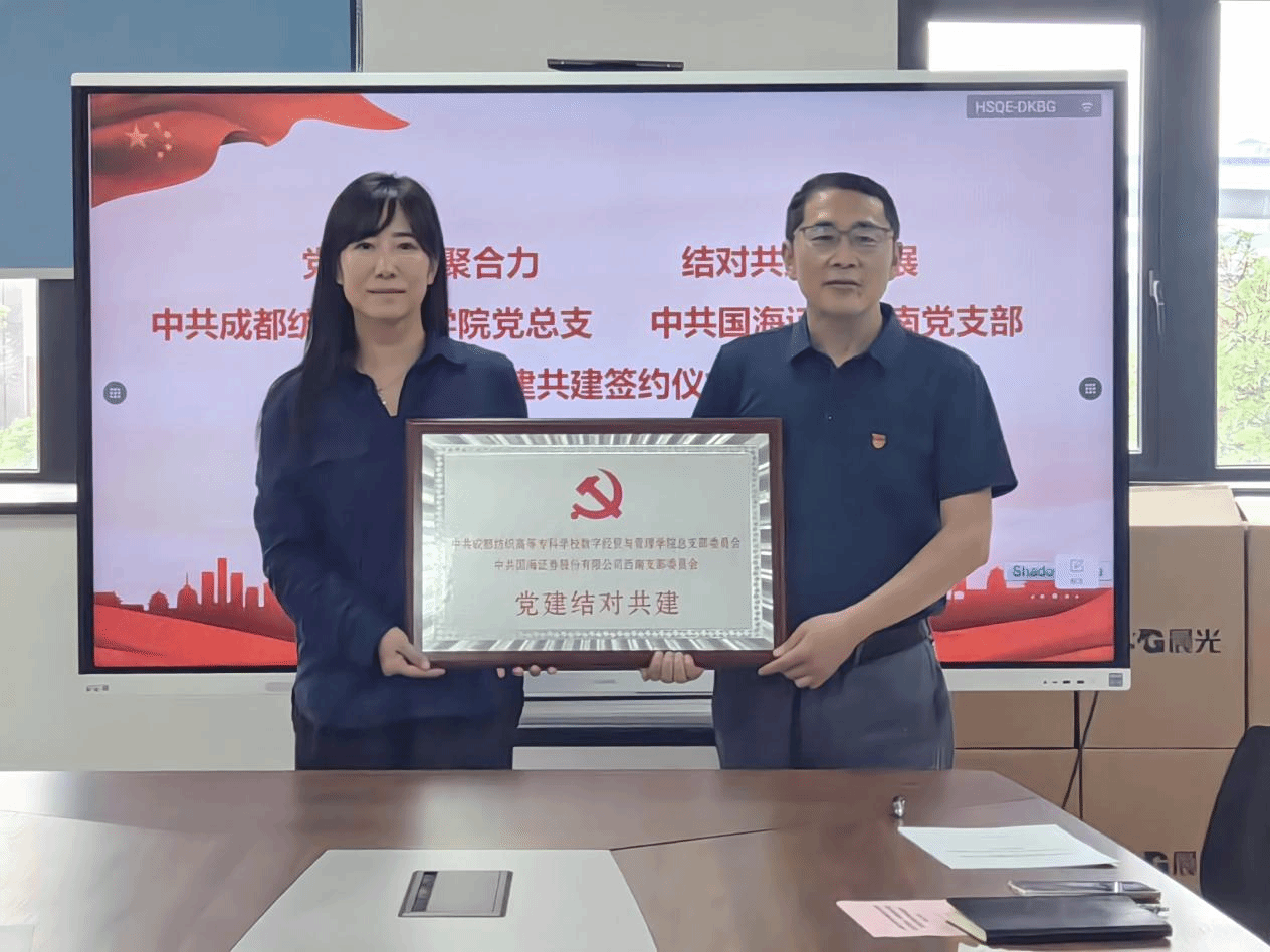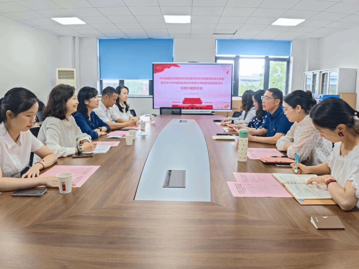5月16日,总支与国海证券西南党支部在融创楼A402开展了党建共建座谈会并签订了合作共建协议。国海证券西南党支部书记兼四川分公司总经理张琦、投顾总监李定鹏、区域合规经理兼支部组织委员范小虹、综合管理总监曾燕、业务人员张君萍,总支书记王霖、党总支副书记兼团总支书记何酉宁、办公室主任凌书娟、专职组织员何敏、教工党支部书记陈雨生参加了座谈会,会议由王霖主持。