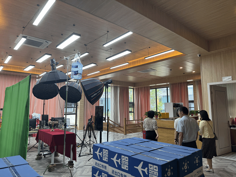 座谈会上,周婷详细介绍了集团的发展历程、战略布局及电商直播基地的特色优势。该基地作为西南地区首个园林式电商园区,建筑面积近 20000 平方,电商直播基地占地近 50 亩,将现代化直播设备与自然景观巧妙融合,打造出独特的森林式设计风格,为电商体验带来全新感受。周婷还介绍了集团在直播带货、大健康板块、农产品业务及电商教培等方面的发展情况和集团与高校的校企合作情况。