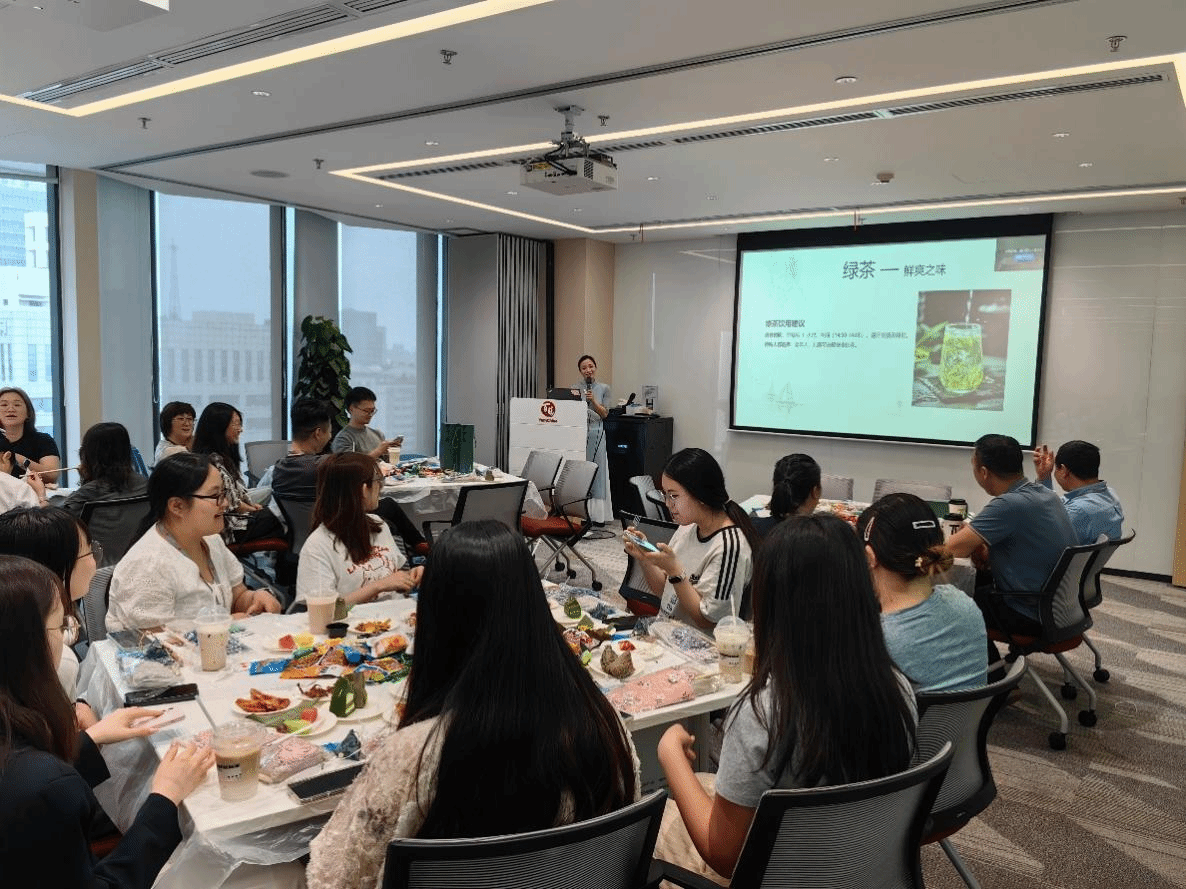 陈雨生,作为高级茶艺师,凭借其专业的知识储备,深入浅出地讲解了茶文化的起源,带领百胜员工一起穿越历史长河,探寻茶文化的深厚底蕴。陈老师详细介绍了茶叶的六大分类及其特征,让员工们对茶叶有了更全面、深入的认识。在分享的尾声,陈老师现场进行了玻璃杯冲泡绿茶的茶艺表演,一招一式尽显优雅,让在场员工沉浸式领略传统茶艺的魅力。