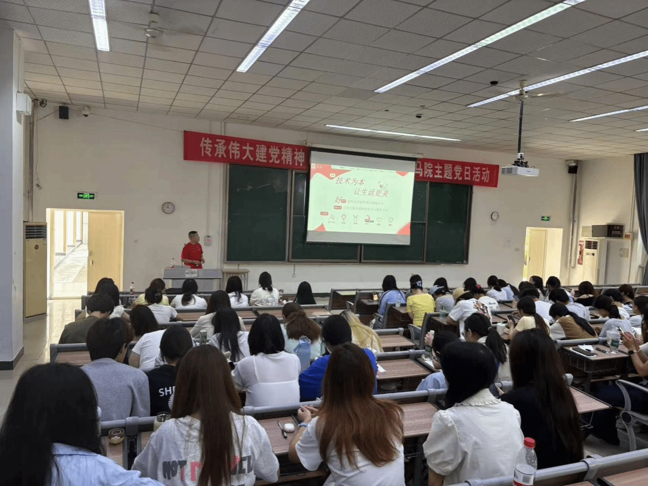座谈会前,鞠鹏为电子商务专业员工做专题讲座,他结合京东的发展历程和行业实践,以生动的案例和详实的数据,向同学们介绍了电子商务领域的最新发展趋势、技术应用以及岗位需求。重点讲解了京东在供应链管理、电商运营、客户服务等方面的创新运行模式,让同学们对电商行业的实际运作有了更直观、更深入的认识。讲座过程中,同学们积极互动,踊跃提问,鞠鹏耐心解答,现场气氛十分活跃、融洽。