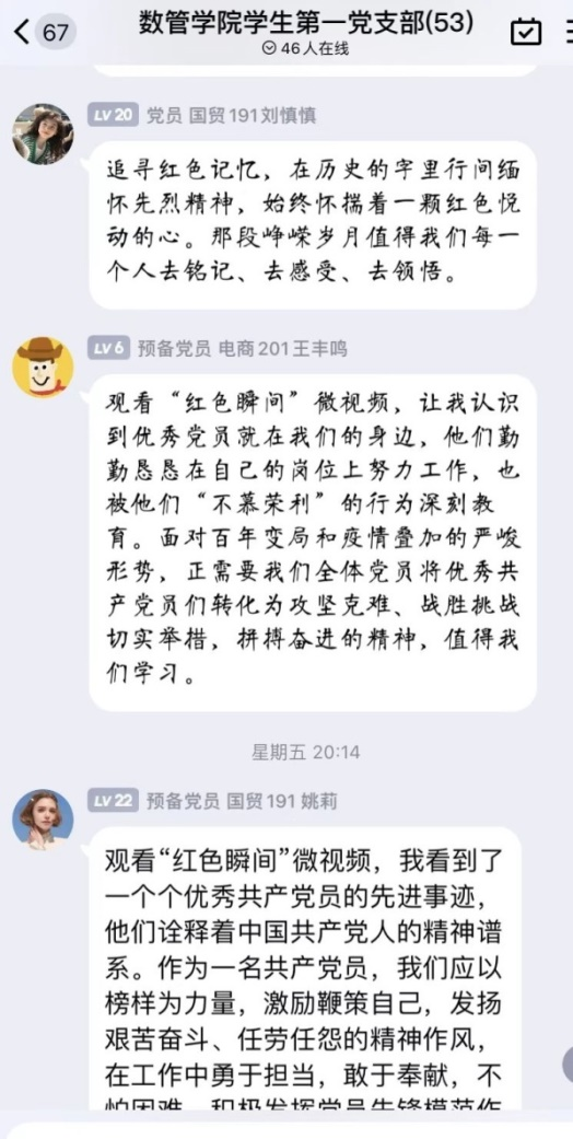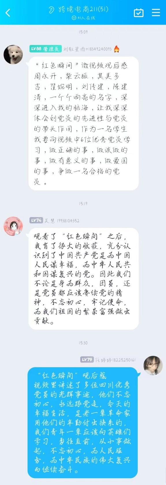 5月27-28日,党支部组织公司部分班级、寝室学习观看学习了此次“红色瞬间”微视频。现场,同学们踊跃分享了自己感想,并表示此次活动让大家更加看到了共产党员坚守初心、一心一意为民谋利的党员本色,使同学们思想上进一步向党组织靠拢,增加了同学们的入党热情。