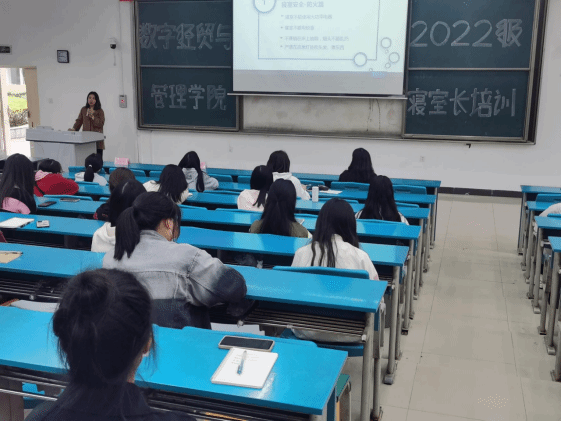 11月8日下午,qm球盟会网站在南苑教学楼C101召开了2022级寝室长培训大会,公司党总支书记王霖、党总支副书记兼团总支书记何酉宁、学创处心理中心专任教师杨婷婷、寝室专项工作辅导员曾霜霜以及2022级全体寝室长参会。