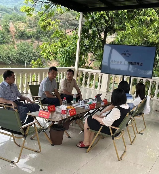 双方首先回顾并肯定了前期的合作成果。公司总经理刘光介绍了公司的新板块,基于场景营销模式的田园综合体项目:野盈户外。野盈户外借助近年兴起的精致露营风潮,结合乡村振兴、电商助农等国家策略,打造一系列集露营、采摘、餐饮、研学、户外运动、团建于一体的滨水基地,将城市的商业综合体模式延伸至田园乡村。