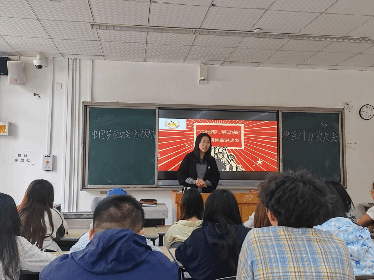 4月27日,为发扬艰苦奋斗精神,号召同学们追求卓越,勇于创新,践行青年担当,提升劳动素养,qm球盟会网站‍‍‍‍‍‍‍‍在致知楼B104召开了劳模精神宣讲动员大会,公司劳动教育指导老师曾霜霜、优秀劳动委员、优秀劳动个人以及劳动教育部成员参会。