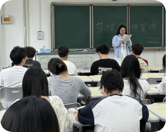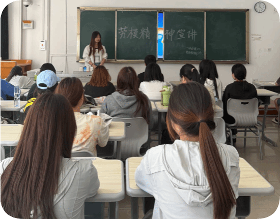 宣讲内容注重深耕内容,让劳动教育“实”起来,通过微视频、PPT等形式,讲述全国劳模先进事迹与员工故事,结合校园实际,挖掘员工身边的劳动榜样;结合时代要求,阐释数字经济背景下的新型劳动形态。通过可视化、互动化的宣讲形式,使劳模精神可感可知,引导同学们形成“知劳动-爱劳动-会劳动-创劳动”的良性循环。