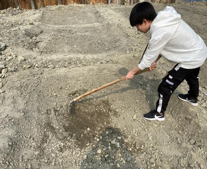四、余晖下,捕捉到会计214一群忙碌的小可爱,他们趁着天黑前要完成责任地的整顿与细翻,为下一步育苗做准备,同学们都很用心,即使手破皮了,仍在努力地松土。