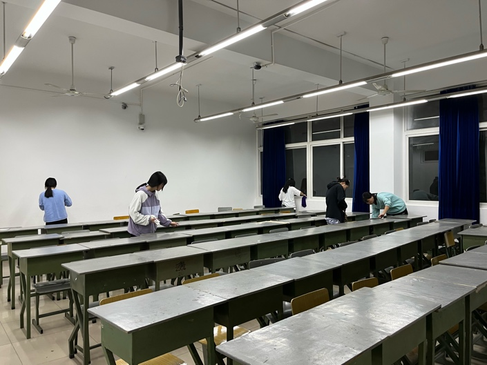 接着,管管把镜头切换到我们的南苑教学楼A区了,让我们一起看看清洁劳动区域大家都在干啥呢?