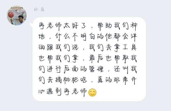 在管管看来,冉老师对同学们来说已是亦师亦友的存在,冉老师日夜劳作的身影对同学们来说已是看在眼里,记在心里,管管相信咱们一起劳作的身影将是青春记忆里最美好的画面!