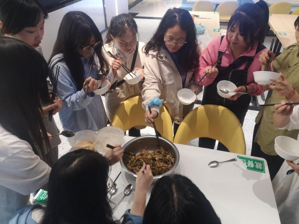 趁着刚从地里摘回来的四季豆还新鲜,同时让同学们品尝到自己亲手种植的蔬菜,公司宠粉王书记自掏腰包买肉给同学们加工四季豆,曾霜霜老师亲自烹饪,让同学们成为馋哭别人的对象。