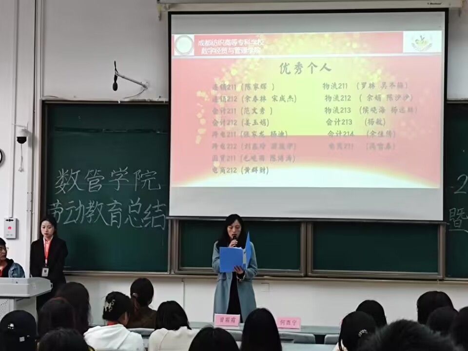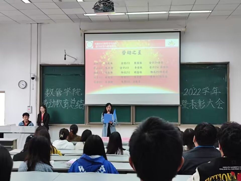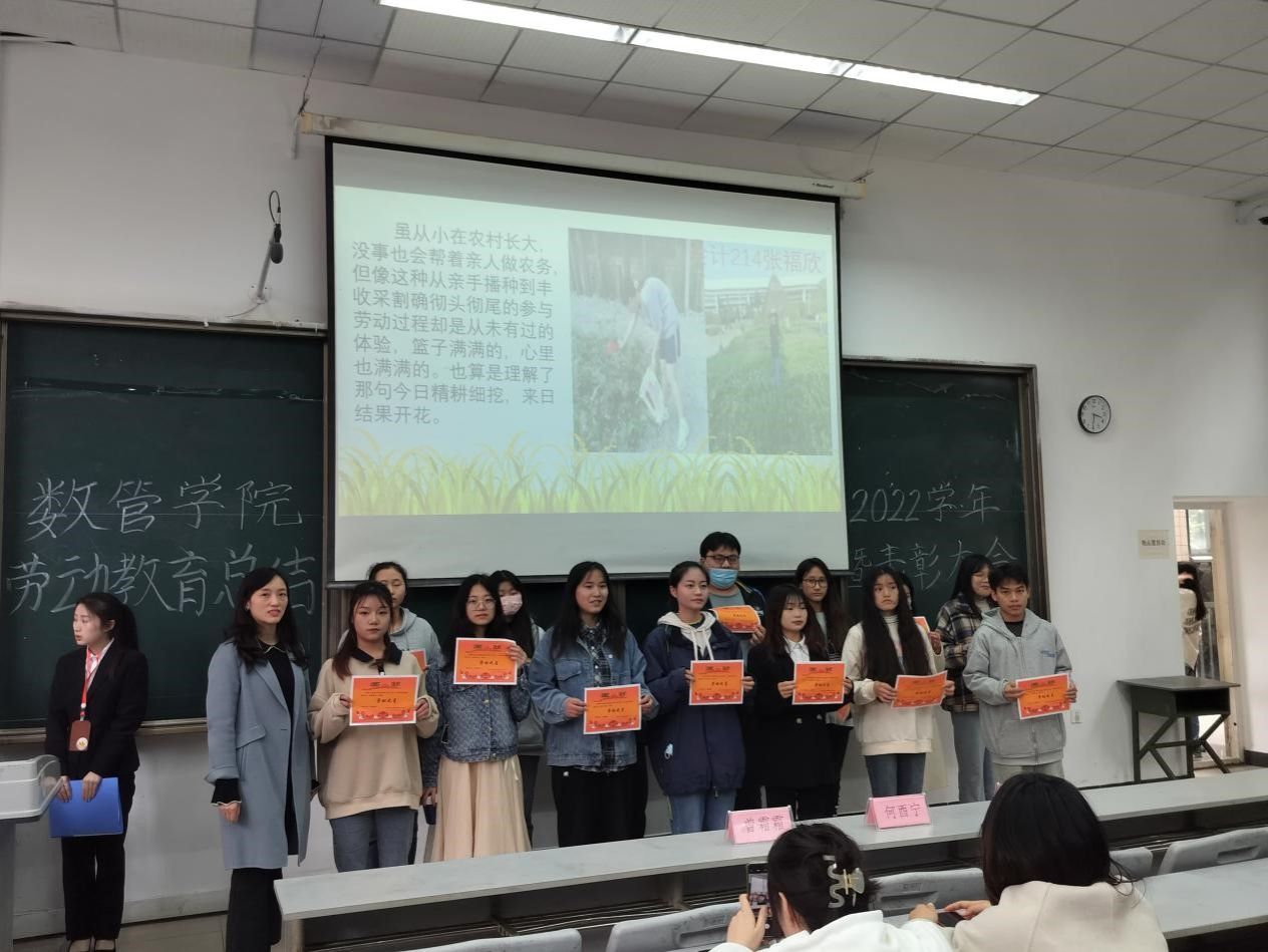 3月7日下午,qm球盟会网站2022年劳动实践教育总结暨表彰大会在教学楼C103顺利进行。党总支副书记何酉宁、劳动教育实践指导老师曾霜霜,2021级班委代表、获奖员工及2022级员工代表参会。