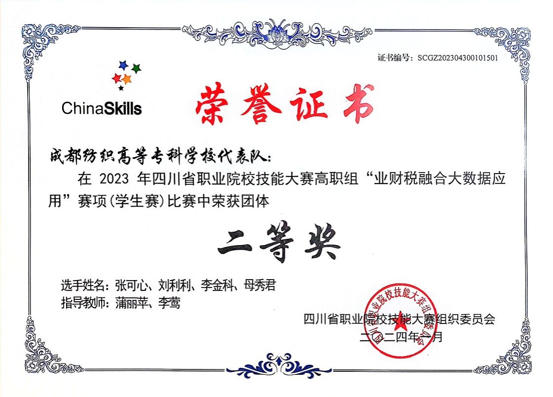 2023 年四川省职业院校技能大赛高职组“业财税融合大数据应用”赛项二等奖