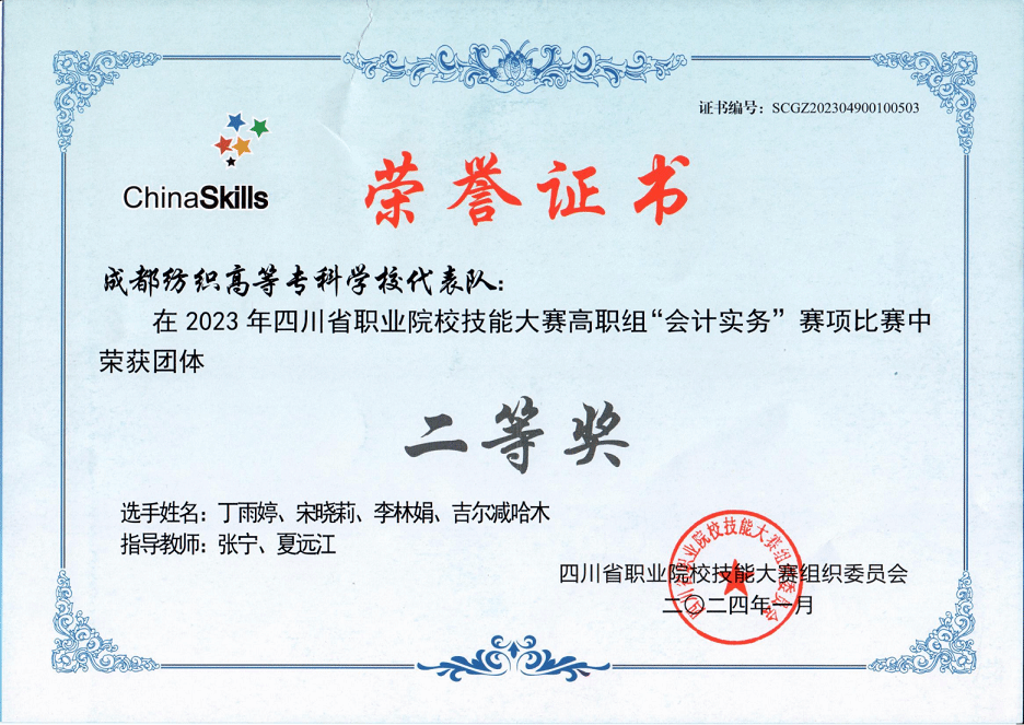 2023 年四川省职业院校技能大赛高职组“会计实务”赛项二等奖